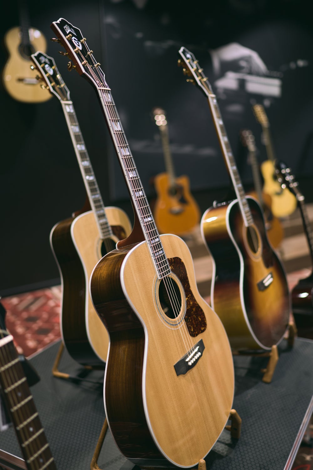 De Guild F-55 is een westerngitaar met een jumbo body van massief hout en gebouwd met het vakmanschap waar Amerikaanse gitaren om bekendstaan. De top van massief sitka sparrenhout en de palissander body geven zowel een prachtige look als een warme, volle klank. Stijlvolle details zijn er in de vorm van een ebbenhouten toets met V-block inlays, goudkleurige Gotoh stemmechanieken en tortoiseshell slagplaat.