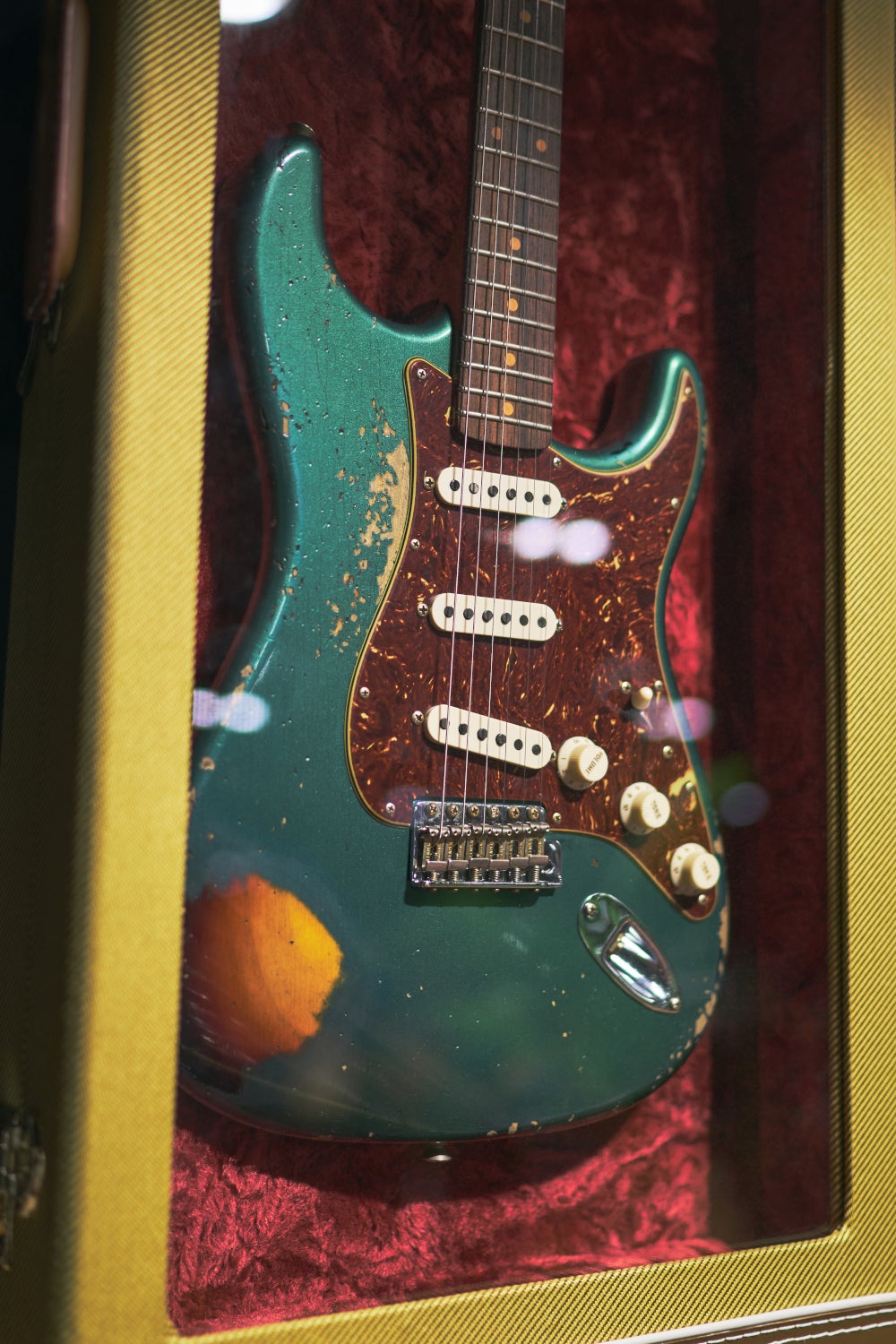 De groene Fender Custom Shop Limited Edition Roasted ’61 Strat is een uniek collector’s item met Super Heavy Relic Aged Sherwood Green over 3-Color Sunburst afwerking. De roasted body en hals geven extra sustain en resonantie, terwijl Hand-Wound Texas Special pickups een krachtige, veelzijdige Strat-sound leveren.