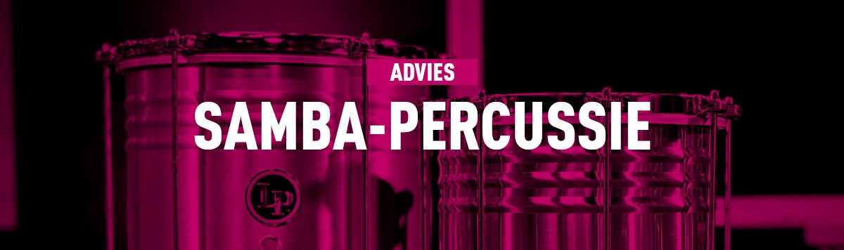Samba is een Braziliaans muziek-genre waarbij percussie een grote rol speelt. Samba-percussie wordt meestal in groepsverband gebruikt en de diverse instrumenten vullen elkaar aan. Omdat er zo veel verschillende soorten samba-instrumenten zijn en ze soms erg op elkaar lijken, kan het lastig zijn om de samba-percussie te vinden die bij je past. Daarom beantwoorden we met deze Keuzehulp de belangrijkste vragen over deze typisch Braziliaanse percussie. Staat je vraag er niet bij? Neem gerust contact met ons op! 1. Welk samba-percussie-instrument heb ik nodig?Samba-bands hebben vaak een grote bezetting waarbij iedere muzikant een duidelijke rol en taak heeft. Een typische samba-band bevat onder andere één of meer surdos, caixas, tamborims, agogo bells, repiniques, timbals, cuicas, ganzas, chocalhos en pandeiros. Welk Braziliaans percussie-instrument geschikt is voor jou, hangt af van de rol die je gaat spelen in de band. Lees verder voor meer informatie. Weet je nog niet welke rol je wilt spelen? Of ga je niet in een band spelen? Kleine samba-percussie, zoals ganza-shakers en agogo bells, is altijd leuk om in huis te hebben. » Alle samba-percussie