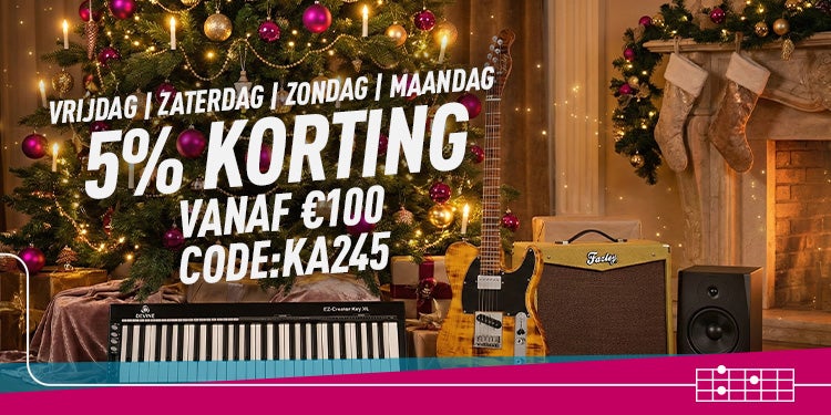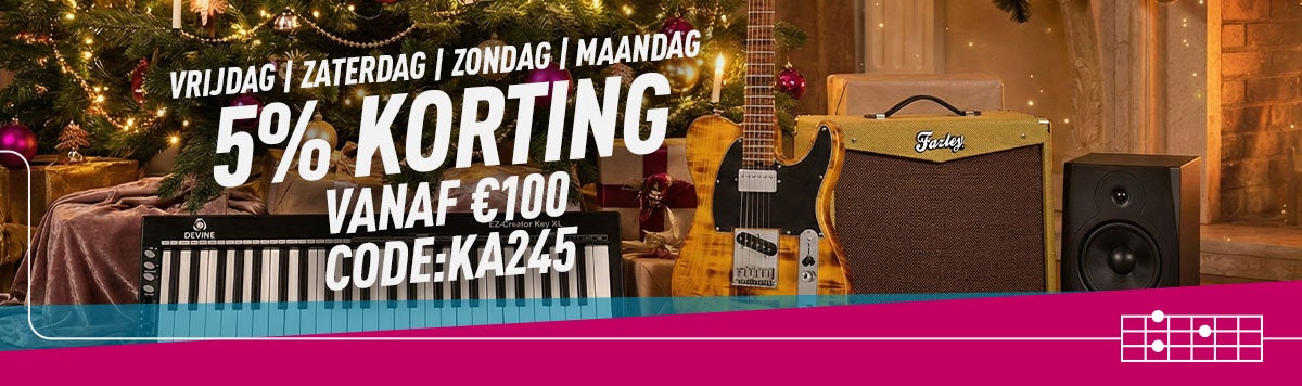 De korting is niet geldig op vervolgaankopen buiten de actieperiode. De 5% korting is geldig op het hele assortiment* bij een besteding vanaf € 100. De 10% korting is geldig op Fazley, Devine, Ayra, Innox, Javier Enriques en LaPaz. De code is geldig van 26 t/m 29 december 2025. Acties zijn niet geldig met terugwerkende kracht. Bax Music behoudt zich het recht voor om de actievoorwaarden tussentijds te wijzigen. Bax Music behoudt zich het recht voor om de actie voortijdig te beëindigen. Typfouten voorbehouden. * Uitgezonderd Bax Music cadeaubonnen, Line 6 Helix Stadium & D10, Yamaha CLP-8-serie, MODX en Montage. |