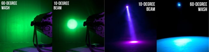 Het is een lamp met bescheiden afmetingen, maar z'n prestaties mogen niet onbelicht blijven. De Z4 bestaat uit een viertal LED-lampen welke u kunt bedienen met uw DMX-controller. U gebruikt hiervoor 4, 6, 8 of 9 faders, afhankelijk van de gekozen modus. Op de lamp zelf stelt u de zoom in, de afstralingshoek dus. U kunt dus zelf bepalen of u een strakke spot wilt op een podiumartiest of dat u het hele podium een zacht kleurtje geeft.