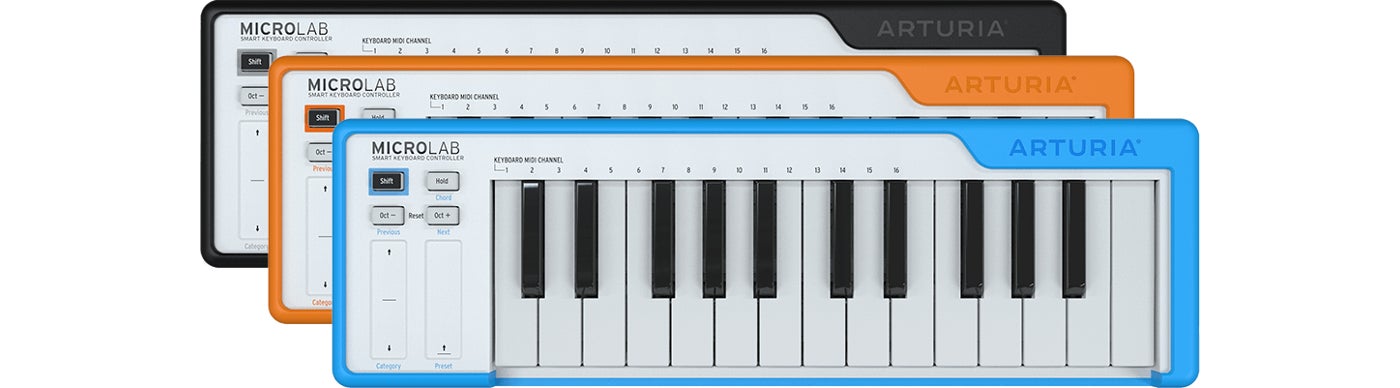 Je gaat op reis, en neemt mee... natuurlijk je laptop, zodat je overal muziek kunt produceren. En dankzij de nieuwe Arturia Microlab kun je ook een MIDI-klaviertje meenemen, want zo compact is dit klavier. Dit model is beschiktbaar in zwart, blauw en oranje.
