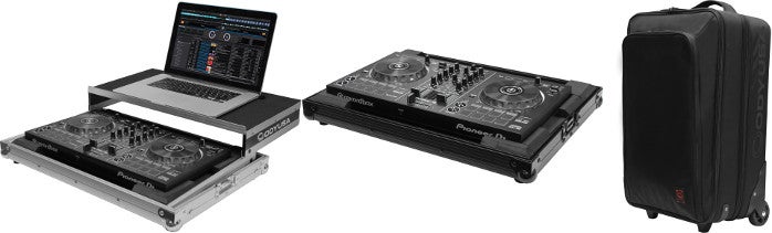 Voor zowel de DDJ-RB als de DDJ-RR zijn er 4 flightcases beschikbaar. Twee daarvan zijn nauw aansluitende modellen met een laag profiel, waarbij je goed toegang hebt tot de aansluitingen van de controller. Hiervan is er een versie met chromen hardware en een geheel zwarte versie. Daarnaast is een grotere case met een uitschuifbaar plateau voor het plaatsen van een laptop. Ook hier kun je kiezen tussen een chromen en een geheel zwarte versie.