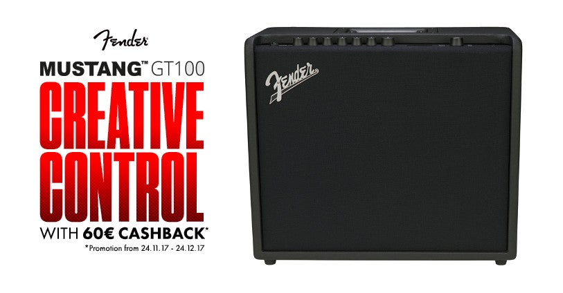 Heb je je oog laten vallen op een Mustang GT100 gitaarversterker? Dan kun je nu profiteren van extra voordeel. Wanneer je voor 24 december 2017 dit modelingcombo de jouwe maakt, dan kun je via Fender een 60 euro terugkrijgen op je aankoop.