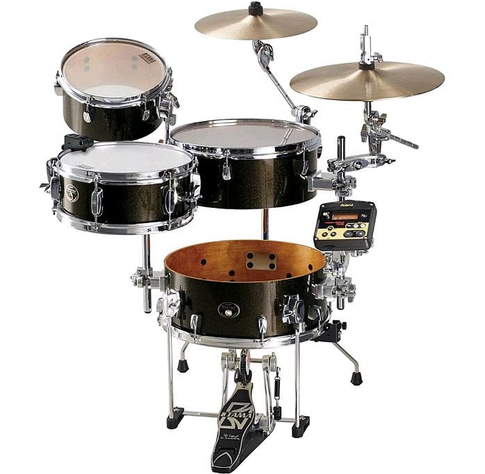 Dit drumstel is een kruising van een akoestische en een elektronische kit. Het akoestische deel bestaat uit een compacte cocktail kit. Met een horizontale bassdrum, een snaredrum en twee toms heeft hij al volledige klank. Maar door de Roland TM-2 module en triggerset te installeren gaat er een wereld van nieuw klanken open. Deze module herbergt 99 voorgeprogrammeerde kits, maar nieuwe klanken zijn eenvoudig via SD-kaart toe te voegen.