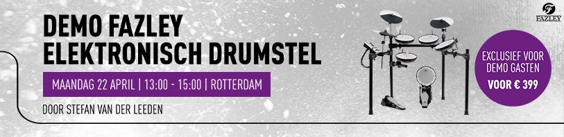 Demo Fazley elektronisch drumstel op 22 april bij Bax Music Rotterdam |