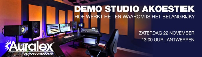 Auralex Acoustics en Bax-shop organiseren aanstaande zaterdag 22 november een demo 'Studio Akoestiek - hoe werkt het en waarom is het belangrijk'. Locatie van deze demo is de muziekwinkel in Antwerpen, aan de Stijfselrui 46.