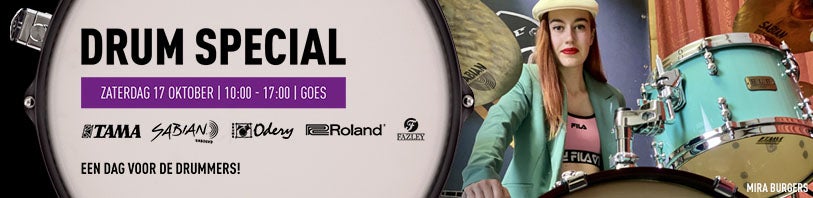 Op 17 oktober is er weer een Drum Special in onze winkel in Goes! Een jaarlijks terugkerende dag waarbij drummers, slagwerkers en percussionisten centraal staan. Dit jaar pakken we het vanwege covid19 iets bescheidener aan dan je misschien gewend bent, maar dat wil niet zeggen dat het niet een hele mooie dag belooft te worden met interessante clinics, demo's en leuke aanbiedingen. Vertegenwoordigers van onder andere Odery, Tama, Meinl en El Cajon Percusion zullen aanwezig zijn om al je vragen te beantwoorden.