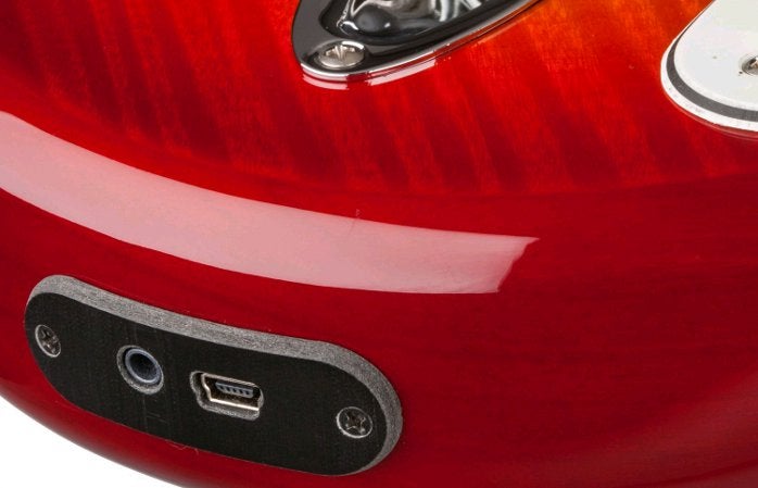 USB en hoofdtelefoonU ziet het niet meteen, maar aan de zijkant van deze elektrische gitaar, ergens in de buurt van de 6.3 mm jack-uitgang, verstopte Fender een USB-aansluiting en hoofdtelefoon-uitgang. Het stelt u in staat om het instrument zowel te verbinden met een normale gitaarversterker als met een PC, een Mac, een iPhone, iPad of een iPod touch. De nodige USB-kabels worden meegeleverd, zodat u meteen aan de slag kunt met het maken van opnames of het monitoren van uzelf in een daarvoor geschikte app. Gebruikers met een iOS-apparaat met 30-pins-aansluiting dienen een los verkrijgbare USB - 30pin-kabel te bestellen.