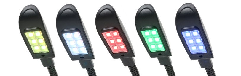 Praktische lichtbronDe lampjes uit de LITE-serie zitten niet ingewikkeld in elkaar. Elke kop is uitgerust met LED's in een 2x3 matrix, die dankzij een combinatie van lenzen en reflectoren zorgen voor een optimale lichtopbrengst. Op de kop van het lampje vind je de aan-/uit-knop. Bij de versies met wit licht kun je met deze knop het licht ook in verschillende tanden dimmen. In het geval van de RGB-versies kun je hiermee wisselen tussen warm wit, koud wit, rood, groen en blauw. Bovendien hebben deze kleurenversies een geheugenfunctie, die de laatst ingestelde kleur bewaard. Alle lampjes zijn gemonteerd op een flexibele zwanenhals. De USB-lampjes kun je op vrijwel elke standaard USB-poort aansluiten. Bij de rack-versies wordt een stroomadapter meegeleverd. Welke opstelling je ook hebt, met Innox LITE-lampjes heb je altijd een goed overzicht op je apparatuur. Meer informatie over prijzen en specificaties vind je op de productpagina's.