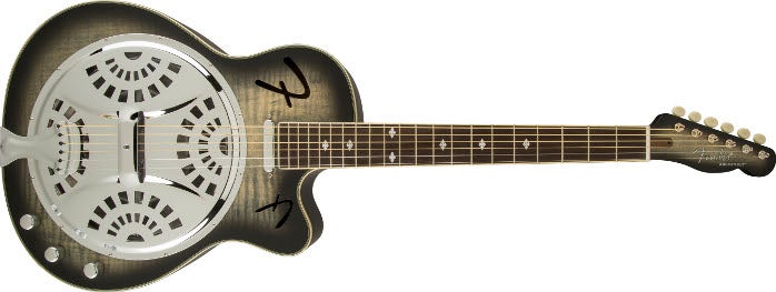 In de Fender Roosevelt Resonator zijn maar liefst drie manieren om het gitaargeluid te versterken Verenigd. Resonator gitaren kwamen begin vorige eeuw in opkomst toen de vraag naar gitaren met meer volume steeds groter werd. Met de komst van de elektrische gitaar raakte de resonator op de achtergrond maar het kenmerkende geluid bleef, zeker bij bluesmuzikanten, geliefd. Het onversterkte geluid van deze Roosevelt Resonator is door zijn 9.5 inch metalen conus al zeer indrukwekkend. Het versterkte geluid wordt verzorgd door een Vintage-stijl Telecaster single-coil element bij de hals en een Fishman Resonator pickup bij de brug. Niet alleen qua geluid ook visueel valt er veel te genieten door de gevlamde esdoorn Top en de Moonlight Black Burst Finish.
