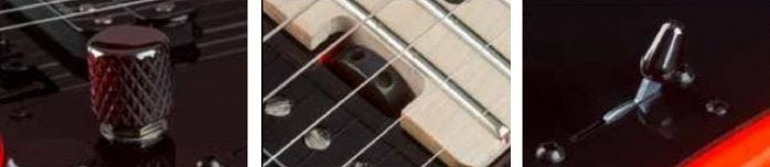 Zowel de volume- als de toonknop zijn voorzien van een speciale potmeter. Ze kunt u de volumeknop omhoogtrekken, waardoor het brugelement wordt gesplitst wordt en zal fungeren als single-coil. De No-Load potmeter werkt in posities 1-9 als een standaard toonknop, maar in positie 10 wordt deze regeling uit het circuit gehaald. Het resultaat is dat het natuurlijke klankkarakter van de gitaar mooi naar voren komt en de elementen meer output leveren. In plaats van de gebruikelijke toggle switch krijgt u nu een blade-schakelaar om tussen de elementen te kunnen schakelen. Kortom, de CharvelPro Mod-gitaren zijn verrassend veelzijdig.