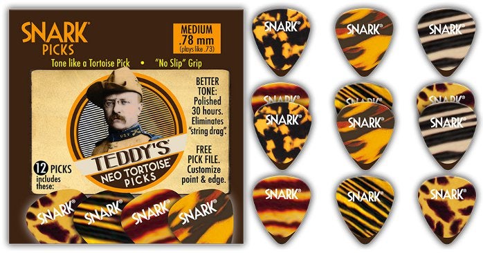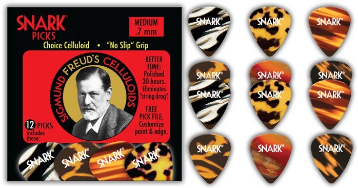 De vernieuwende clip-on tuners van Snark zijn reeds volledig ingeburgerd in de gitaristenwereld. Hoewel dit nog niet gezegd kan worden van de Snark Plectrums is dit hoogstwaarschijnlijk slechts een kwestie van tijd. Snark pakt de zaken namelijk direct goed aan en komt met gelijk twee typen plectrumssets op de proppen. De Sigmund Freud's Celluloids en Teddy's Neo Tortoise picks. Voor elk wat wils want bij beide typen plectrums kunt u kiezen uit maar liefst vier verschillende diktes.