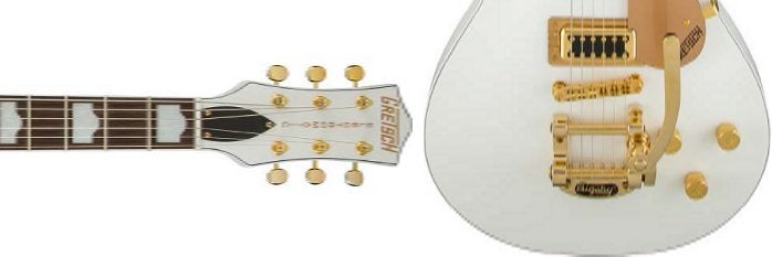 De originele Gretsch 6134 White Penguin is een gitaar die bij velen bekend is maar slechts door weinigen aanschouwd. Het model is nog geen jaar in productie geweest en slechts in een prijslijst uit 1959 en een folder uit 1958 vermeld door Gretsch. Het moge duidelijk zijn dat de originele modellen, mits ze er überhaupt nog zijn, inmiddels van onschatbare waarde zijn. Nu is er de Limited Edition Gretsch G5434-LTD Electromatic Pro Jet. In de welbekende witte uitvoering en gouden hardware. Met een lindehouten body voorzien van klankkamers en gewelfde top van gelamineerd esdoorn. Twee Black Top Filter Tron elementen zorgen voor 'That Great Gretsch Sound' en de Bigsby licensed tremolo maakt het geheel af. Gretsch mag het dan zelf 'The poor mans Penguin' noemen; met deze Limited Edition electromatic voelt u zich de koning te rijk.