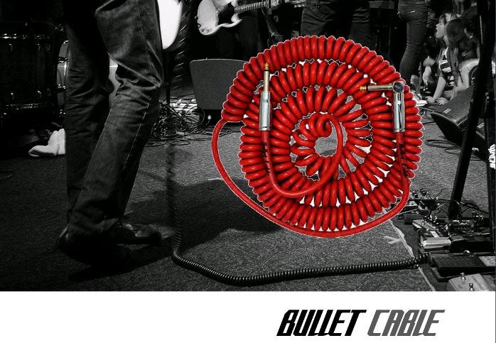 Met een krul nooit meer een kink in de kabel! Het gerenommeerde Bullet Cable blijft zijn kabels verbeteren en komt nu met een oversized kabel met een krul van 30 mm, in verschillende lengtes en kleuren. Eigenaar/ontwerper Ted McCann van Bullet Cable: ,,Elk onderdeel in de gitaarketting is van invloed op de kwaliteit van het geluid. Het beeld dat bestaat dat een kabel slechts een draad is met twee jackpluggen aan het eind, vervuilt de werkelijkheid. Door ons onderzoek de afgelopen dertien jaar kunnen we nu verkondigen dat er veel te behalen is uit goed kabelontwerp.''
