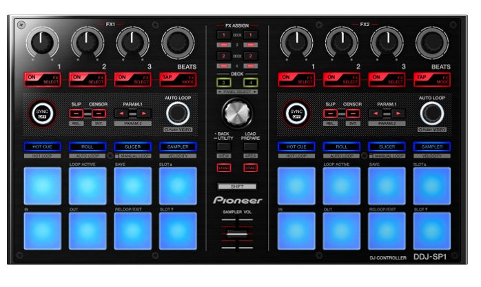 Pioneer DDJ-SP1 DJ controllerDe Pioneer DDJ-SP1 DJ MIDI controller is ontworpen voor de DJ’s die werken met Serato DJ. Met deze controller is het mogelijk om meer spontaniteit en creativiteit in de set te verwerken, omdat hij direct toegang geeft tot de vier decks van Serato DJ en alle andere performance mogelijkheden. Hij heeft pre-mapped knoppen voor de hotcues, sampledecks, loop-sectie en de effectensectie.