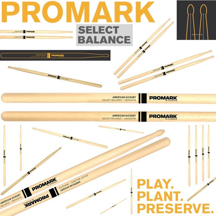 ProMark is de enige drumstokken fabrikant met een eigen zaagmolen, waardoor het mogelijk is het ideale ruwmateriaal voor de productie van zijn eigen drumstokken te leveren. Ook denkt ProMark aan het milieu: voor elke boom die de fabrikant verwerkt worden er vijf nieuwe bomen geplant. Play. Plant. Preserve.