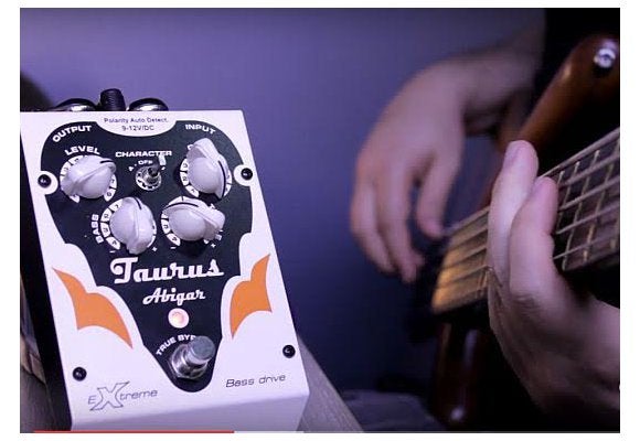 Taurus T-Di Plus met intelligente compressie De compressor wordt ingeschakeld als een bepaald gain-level wordt bereikt. Traploos glijdt de gain de compressorsectie in zodat de gain niet op de loop gaat met het geluid en te allen tijde een muzikale sound wordt behouden. Gebleven is de zorgvuldige instelmogelijkheden van deze pre-amp die ook als booster dienst kan doen. Taurus gebruikt daarbij MLO: Mid Level Optimization. Die technologie past op intuïtieve wijze de sound van de basgitaar aan. MLO zorgt ervoor dat de mids goed gerelateerd blijven bij welke instellingen ook voor bas en treble worden gekozen en houdt het volume beheersbaar als extreme settings worden gekozen voor hoog en laag. Zo merkt de bassist een verandering van klankkleur in plaats van volume. Hierdoor is het maken van een goed geluid zeer intuitief. Taurus Abigar eXtreme Bass Drive Het probleem dat veel laag verdwijnt zodra een drive-pedaal voor een basgitaar wordt gebruikt, ondervangt Taurus met de nieuwe Abigar eXtreme Bass Drive. Naast een toonregeling voor het laag en het hoog heeft deze stompbox ook een tweestandenschakelaar voor het toevoegen van extra 'character' aan de bassound. Character A is wat feller terwijl character B de warmere kant van deze Taurus Abigar eXtreme Bass Drive laat horen. De optie kan ook worden uitgezet en het siert de Poolse ontwerpers dat ze de verschillen tussen de drive-karakters niet al te groot laten zijn, waardoor deze drive zich in live-situaties, in zeer positieve zin onderscheidt van veel andere bass-drives.