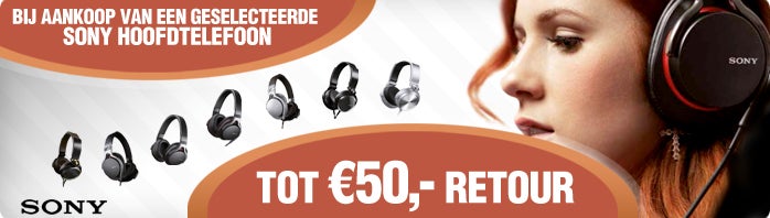 Tot € 50,- retour op uw Sony hoofdtelefoon! |