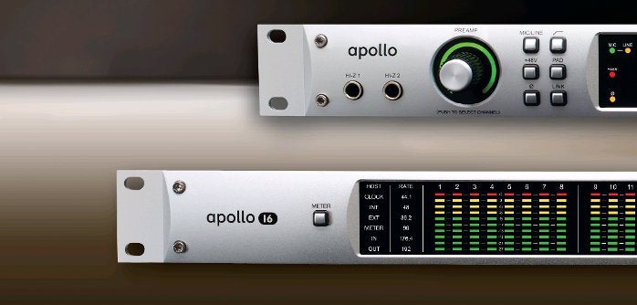 Apollo geluidskaartenDe Apollo geluidskaarten van Universal Audio verschillen onderling van het aantal DSP-porcessoren, aanwezigheid van mic-preamps en het aantal in- en uitgangen. Echter hebben ze allemaal één ding gemeen: een verbluffend goede klank... Dit is te danken aan het hoogwaardige analoge circuit, de high-end converters en de DC-gekoppelde uitgangen. Elk signaal is realtime te bewerken met de UAD-plugins via de overzichtelijke digitale mixer en de onboard DSP-processors.