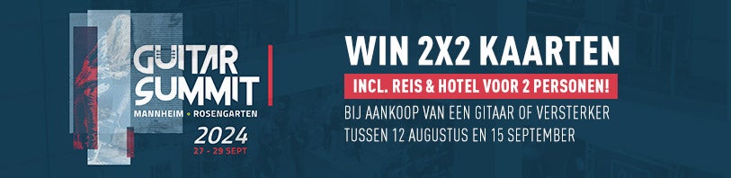 Elke klant* die tussen 12 augustus en 15 september een gitaar of gitaarversterker koopt bij Bax Music maakt kans op twee entreekaarten inclusief vlucht en hotel voor Guitar Summit 2024! Bax Music geeft deze prijs tweemaal weg. Het enige wat je hoeft te doen, is onderstaand formulier invullen. Guitar Summit 2024 begint op vrijdag 27 september en eindigt op zondag 29 september 2024 en vindt plaats in het Congress Center Rosengarten, Mannheim, Duitsland.